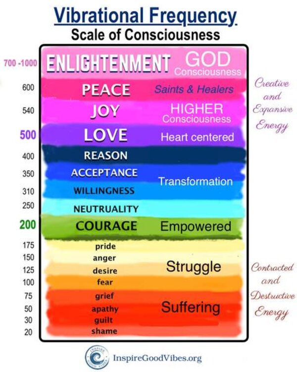 აღნიშნულ სკალაზე ნაჩვენებია ვიბრაციის დონეების და ჩვენი ცხოვრების კავშირი. დანარჩენს თქვენც კარგად დაინახავთ.